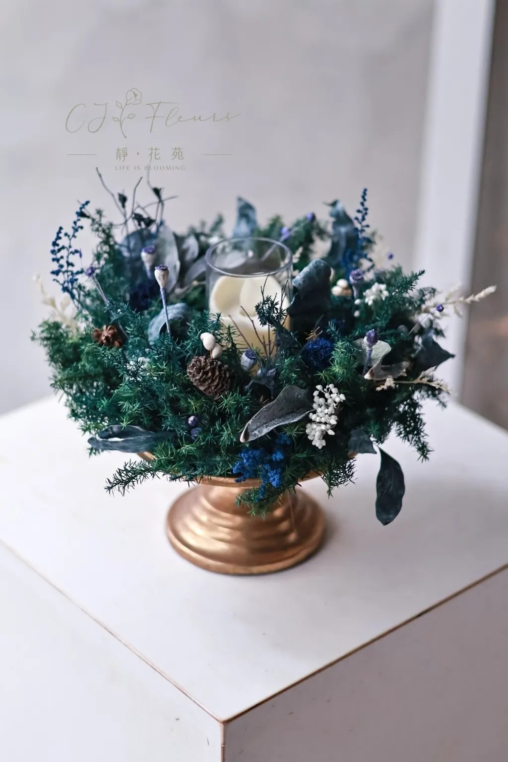 🕯️ 永生聖誕燭台|搭配金屬或木質高腳底座,優雅呈現。