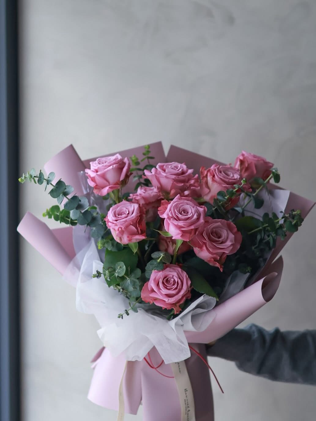 精選進口厄瓜多玫瑰搭配尤加利葉的花束,情人節、生日送禮永不出錯